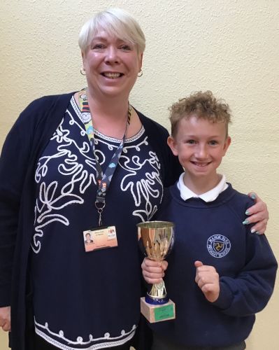 Congratulations to Greeba House who scored the most points at this years Sports Day. Pictured is the Greeba House Captain receiving the winning trophy from Mrs Forrester.